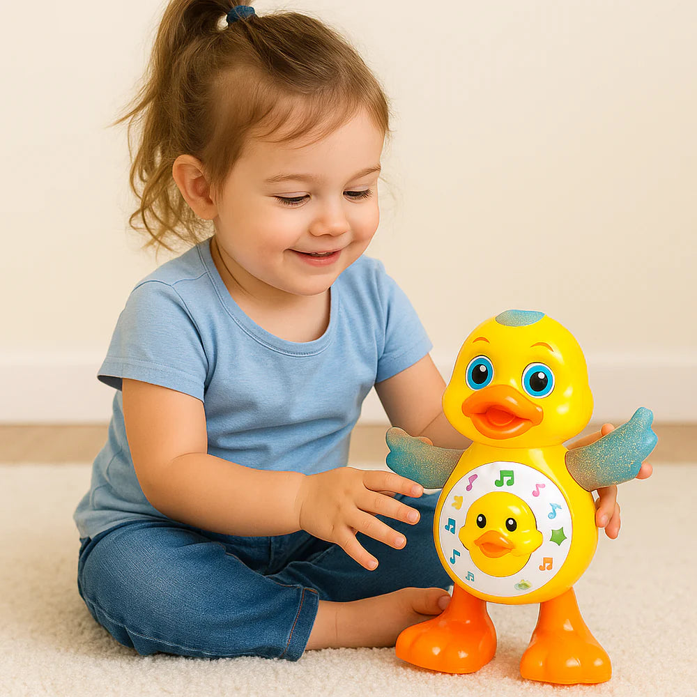 Este pato encantador não só canta como também dança, tornando-se o companheiro perfeito para momentos de alegria e diversão. Movimentos Animados: O Pato Dançarino se move ao ritmo da música, balançando e girando para entreter os pequenos; Efeitos Sonoros: Com músicas animadas e efeitos sonoros engraçados, ele cria uma atmosfera alegre e envolvente;